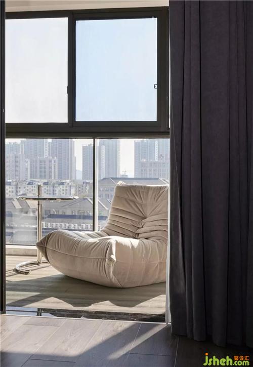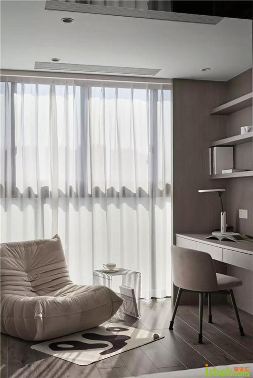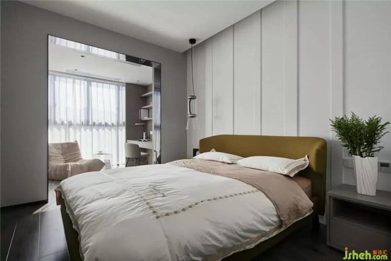 臥室灰白木的色調(diào),雅致的布置給人舒心放松的感覺,獨(dú)有的大陽(yáng)臺(tái)和落地窗,紹興裝修設(shè)計(jì)加以綠植陽(yáng)光的點(diǎn)綴,單看著就是一種享受。