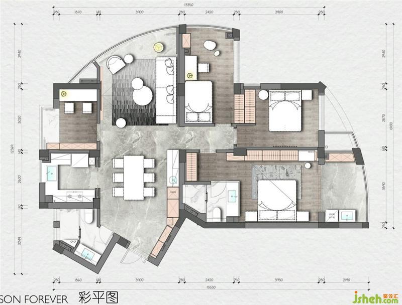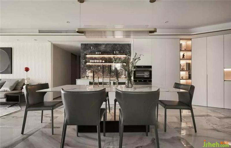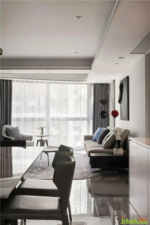 關于設計:這是一個三代同堂的幸福之家,獨特的戶型讓每個空間都陽光明亮,上海室內設計師動靜分區(qū)的手法使公共空間的布局與使用功能完美結合,描繪出最豐富動人的空間效果。