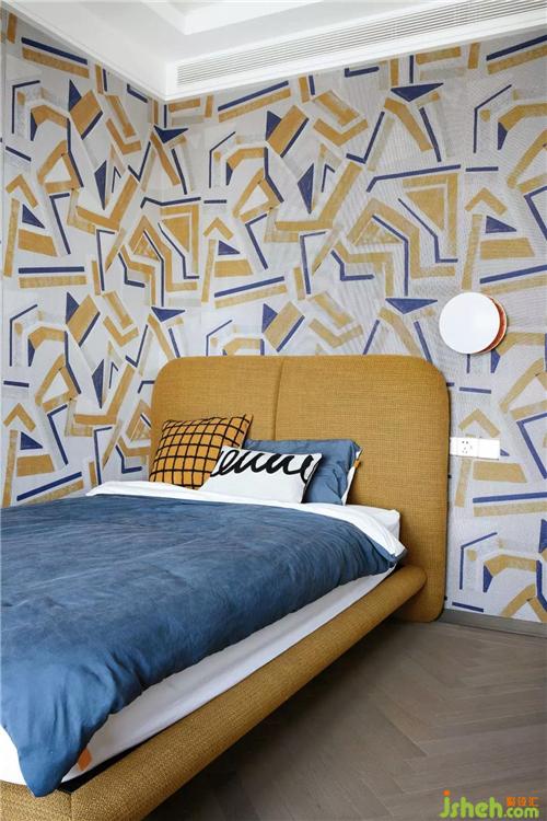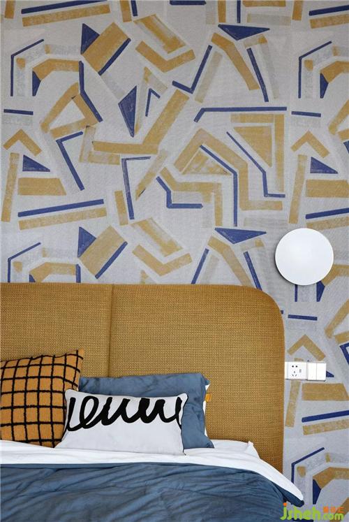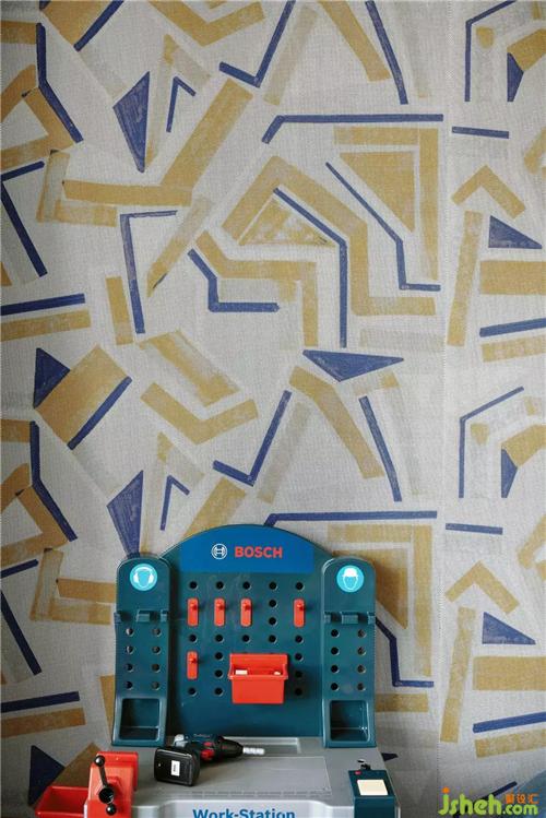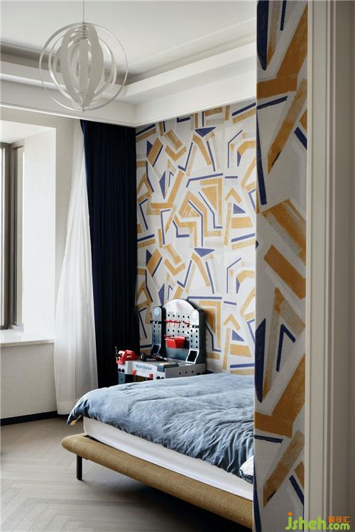設計師根據(jù)原有戶型的結構,把主臥與兒童房中間留出的區(qū)域做成兒童玩耍區(qū),兩個重要的空間之間有了連接;兒童房內(nèi)用了很大膽的墻紙,在自由與清爽的家中給予了生氣勃勃的氣息;