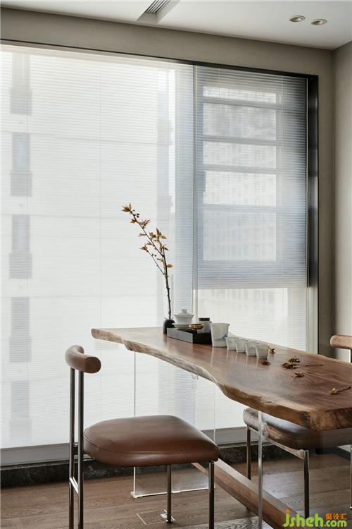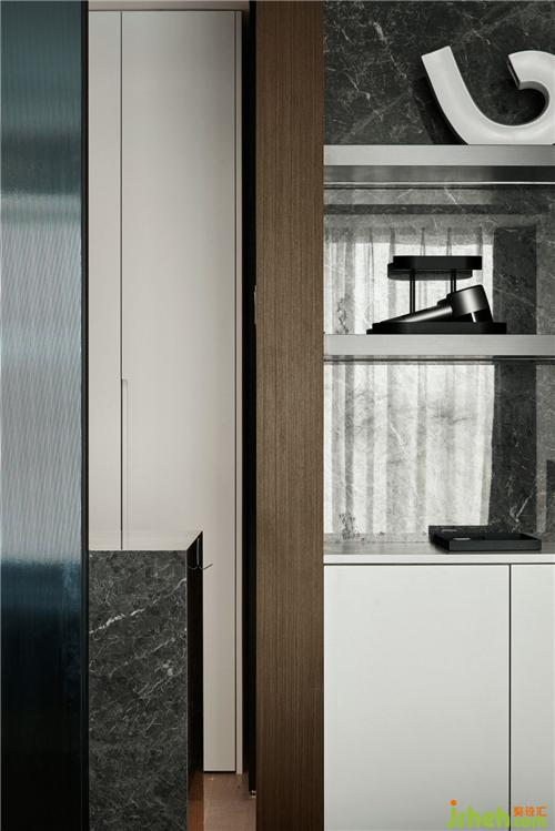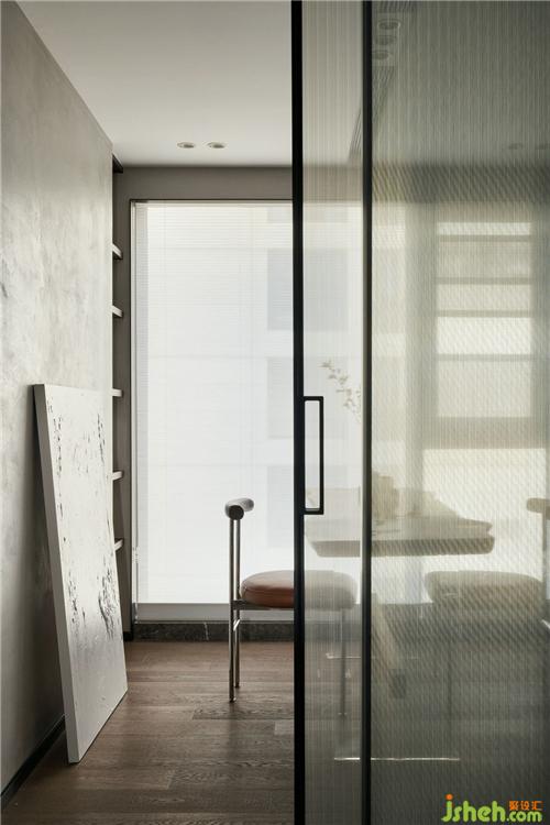 書房與餐廳之間的門采用的是半透的拉絲玻璃,增加了兩者之間的聯(lián)系,力設(shè)計(jì)也增加了空間的延伸效果。