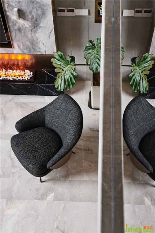蒸汽壁爐印在白色吊頂上暖色的星星火光為整個客廳營造了一種為爐而坐的生活情趣和氣氛,但此外更多的是滿足精神上對生活的原始追求。