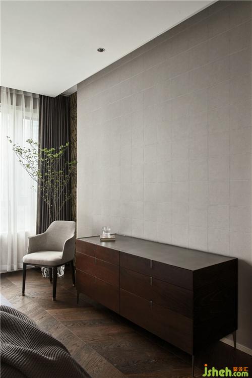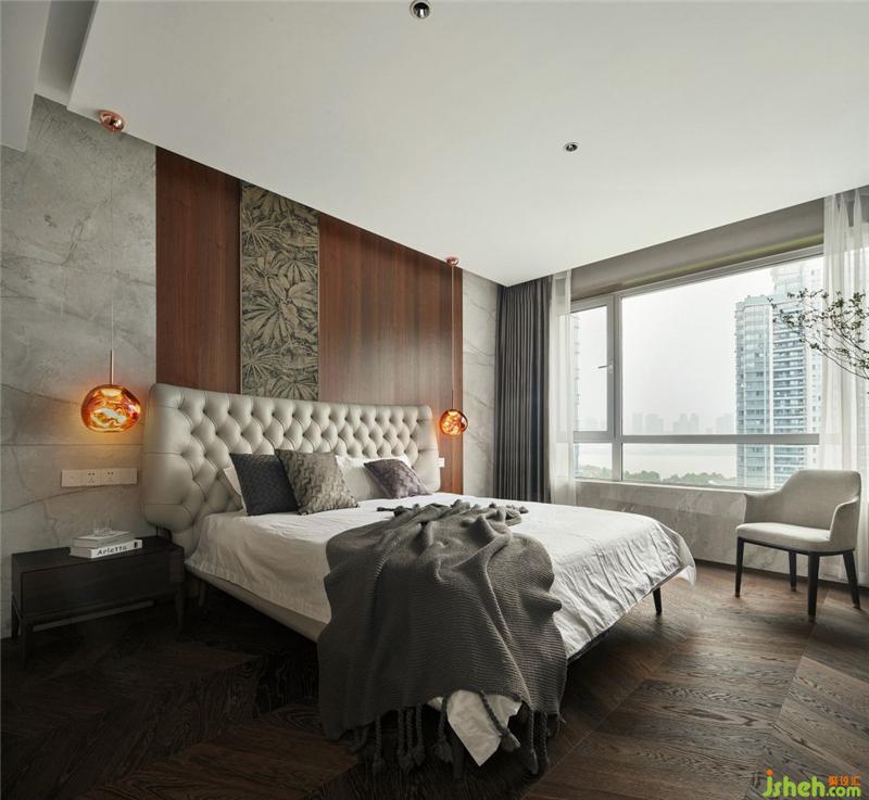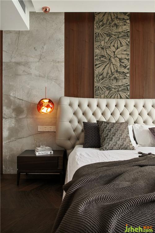 床背景使用木飾面和墻紙與客餐廳相互照應(yīng),主臥空間打造了一個(gè)門(mén)廳,戶型的墻面設(shè)計(jì)讓整個(gè)主臥顯得不那么生硬,墻紙與主臥使用同一款。搭配上natuzzi的床搭配上tomdixon的吊燈,整個(gè)主臥溫馨氣氛和華麗質(zhì)感爆棚。