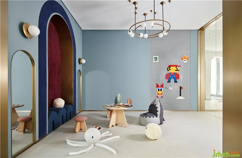 兒童玩耍區(qū)使用了鮮艷的色彩,別具一格!猶如馬克·夏加爾一般,三亞別墅裝飾他的作品依靠內在詩意力量把個人驚艷的意向與形式上的象征和美學因素結合到一起。紅與藍,永恒優(yōu)雅的組合,搭配金屬打造出一個充滿活力與青春的區(qū)域。