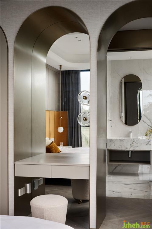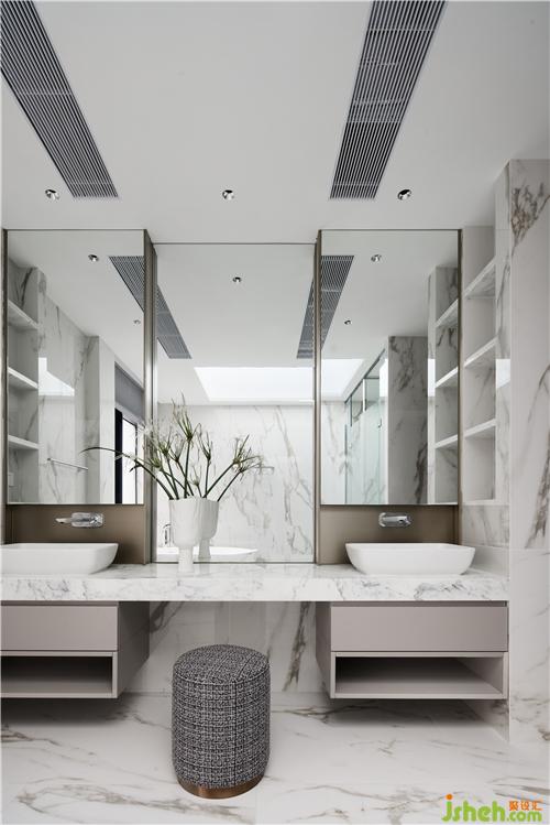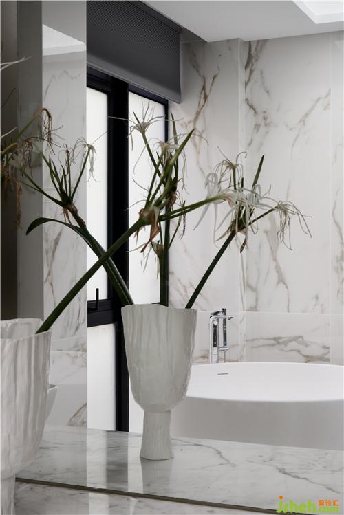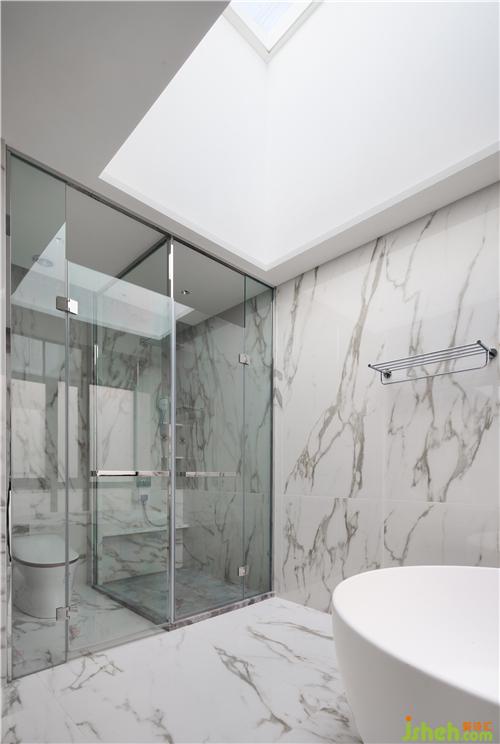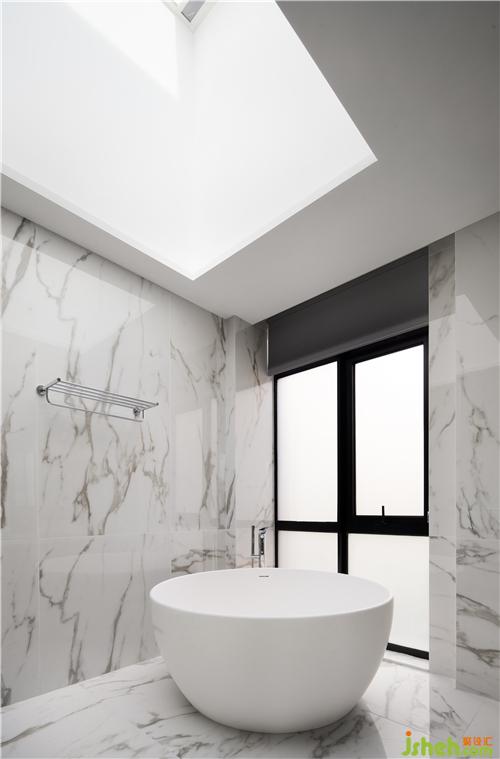 主衛(wèi)使用白色大理石鋪滿墻地面,一片純凈下,仿佛視界就此靜止,讓心也隨之變得平和起來,三亞別墅裝飾室內(nèi)天窗灑落陽光的位置,搭配浴缸,是一番美景更是一番享受。