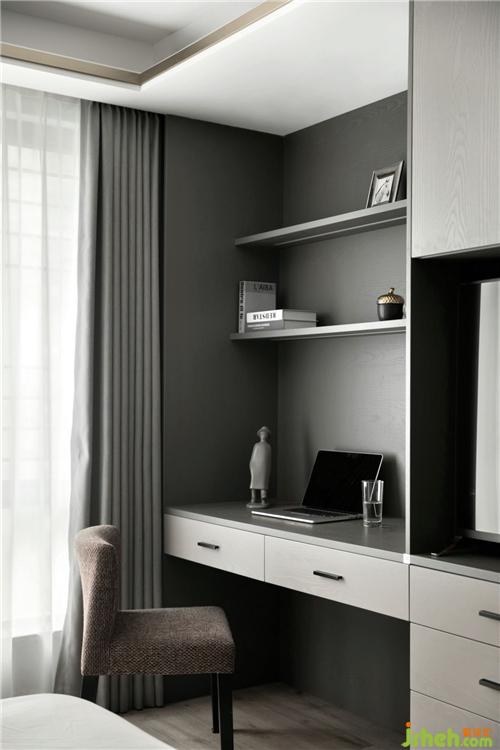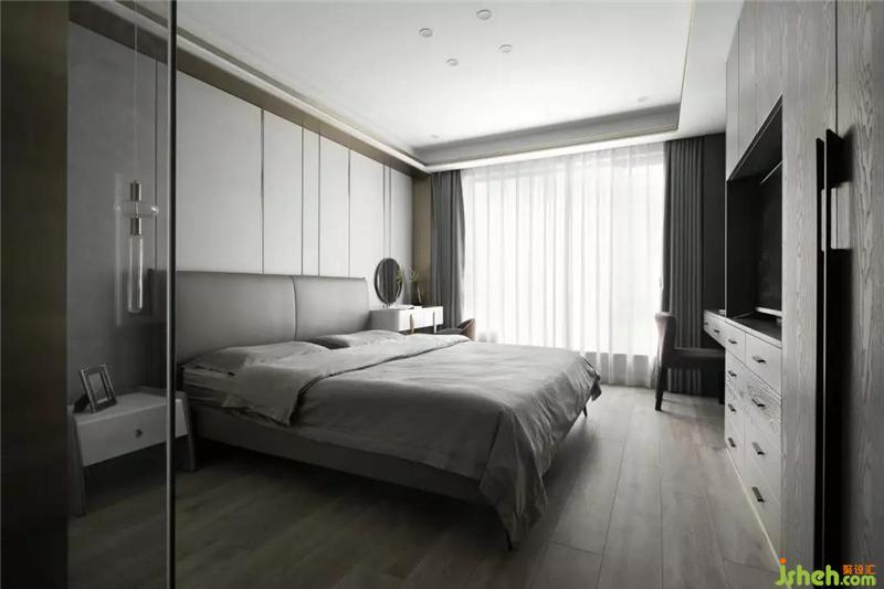 房間以實用優(yōu)化為主,定制的衣帽柜與電視柜寫字臺連接,提高靈活實用性,增加面積的利用率,伴著窗外的光線更凸顯了生活的安靜美好。