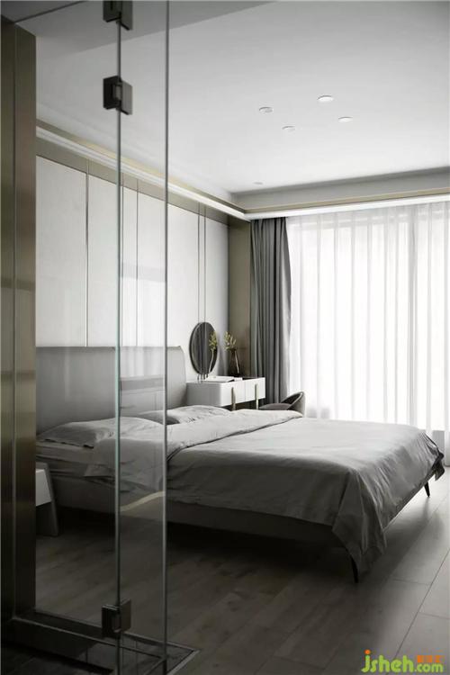 落地窗戶把室外四季的景色引進(jìn)臥室,自然的動態(tài)成為空間藝術(shù)裝飾的一部分。