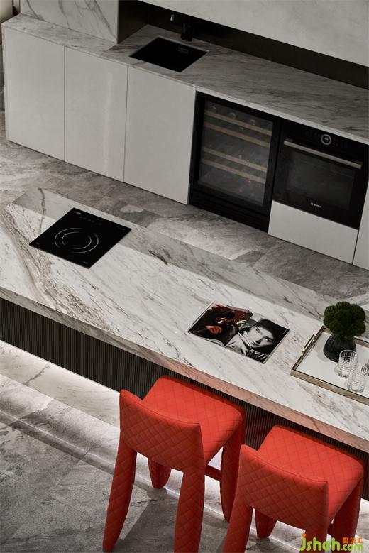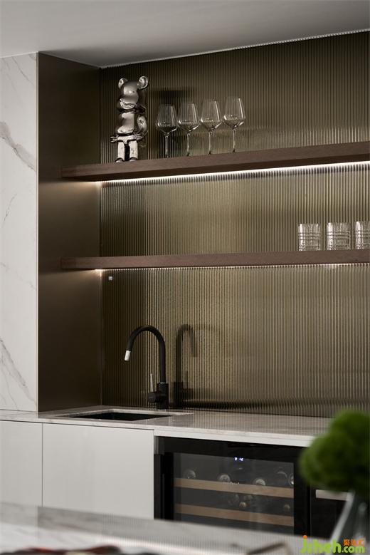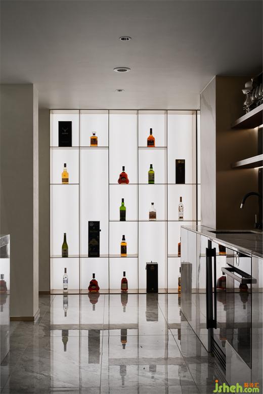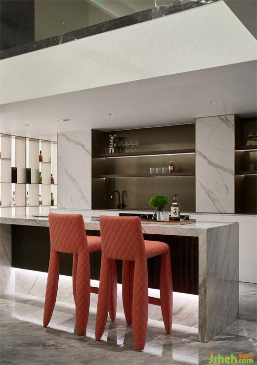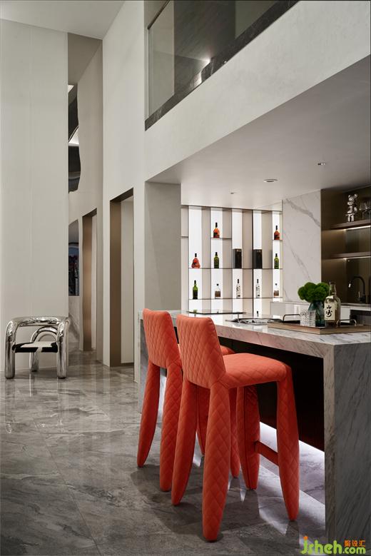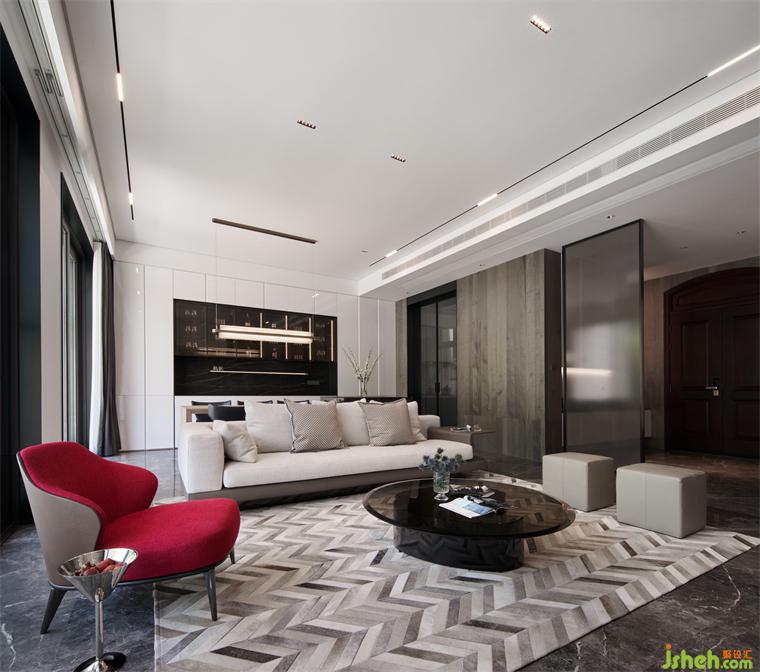 黑白交疊鋪開、明艷的彩色點(diǎn)綴其間。顏色的對(duì)撞展現(xiàn)朝氣,光影投射在金屬材質(zhì)上,并隨著空間使用者的移動(dòng)而不斷變化,別墅裝修設(shè)計(jì)客觀上暗淡的地下空間因此富有生機(jī)。