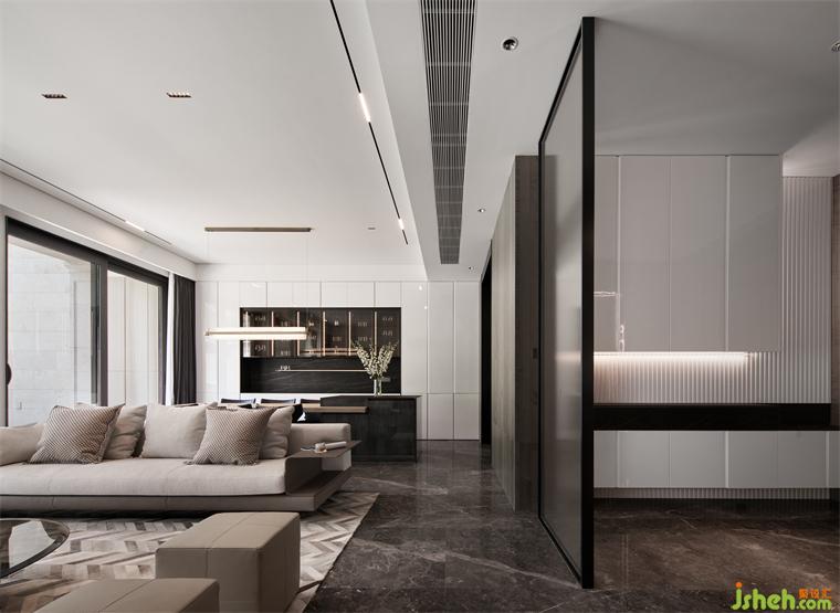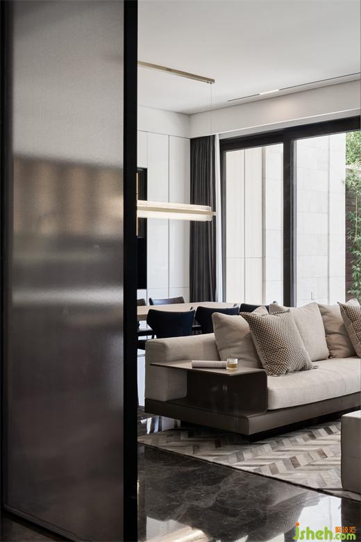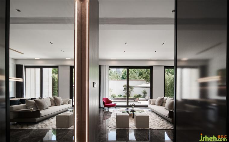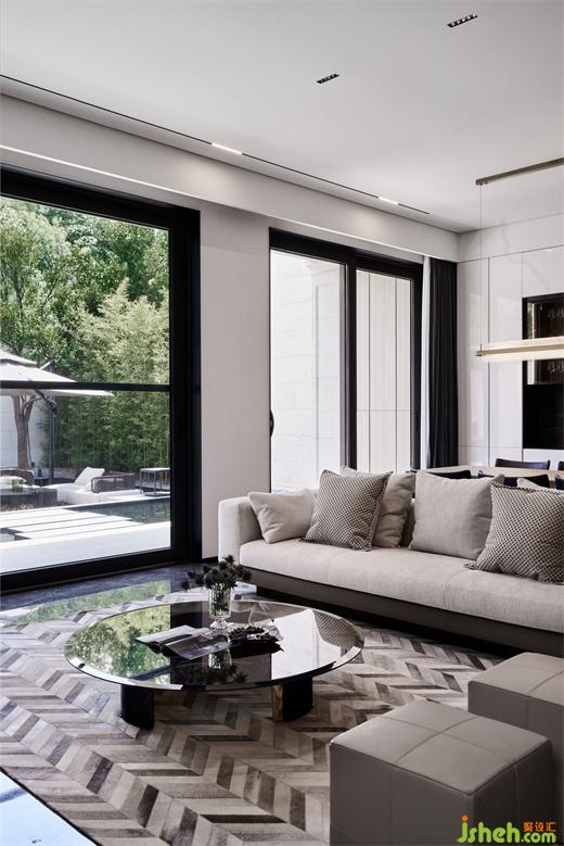 良好的采光條件為起居室的無主燈設計提供條件,別墅裝修設計在視覺上拉高層高,整個空間開闊而自由。