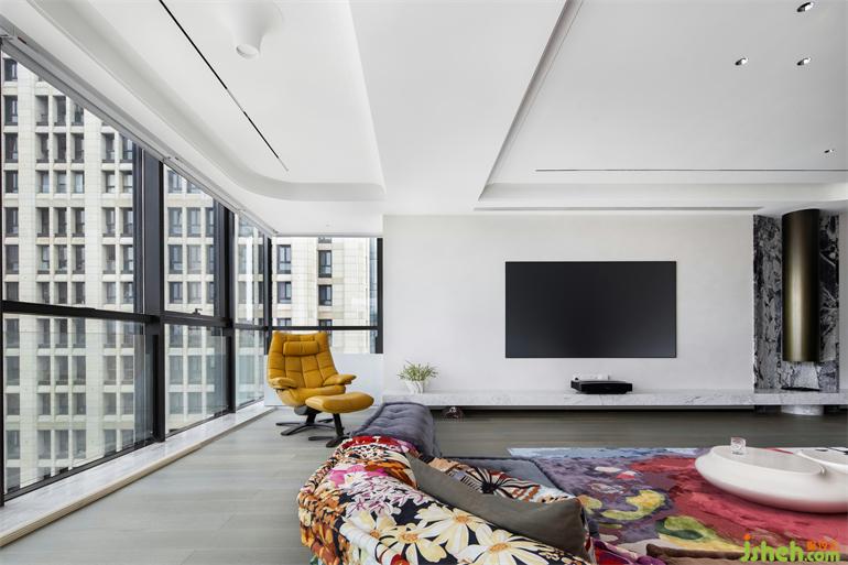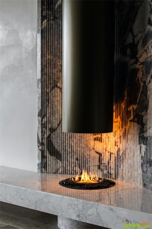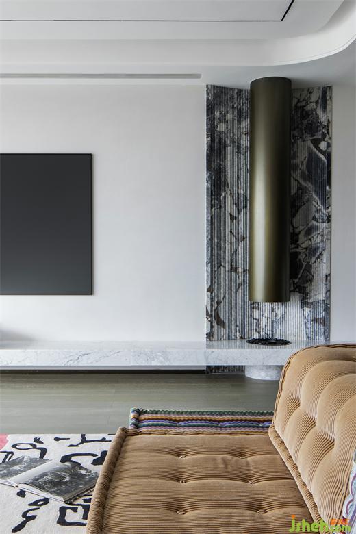 圓形壁爐造型與弧形吊頂、家具呼應(yīng),上海豪宅設(shè)計從硬裝改造到軟裝的挑選,無不應(yīng)和著“統(tǒng)一”、“柔和”的生活協(xié)奏曲。