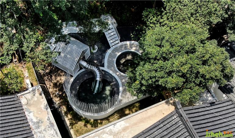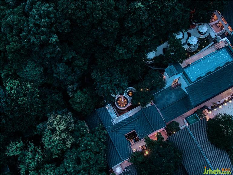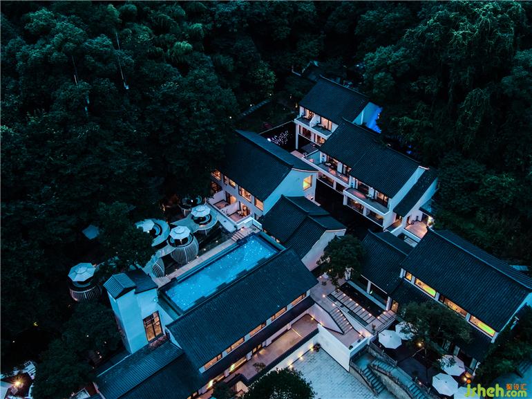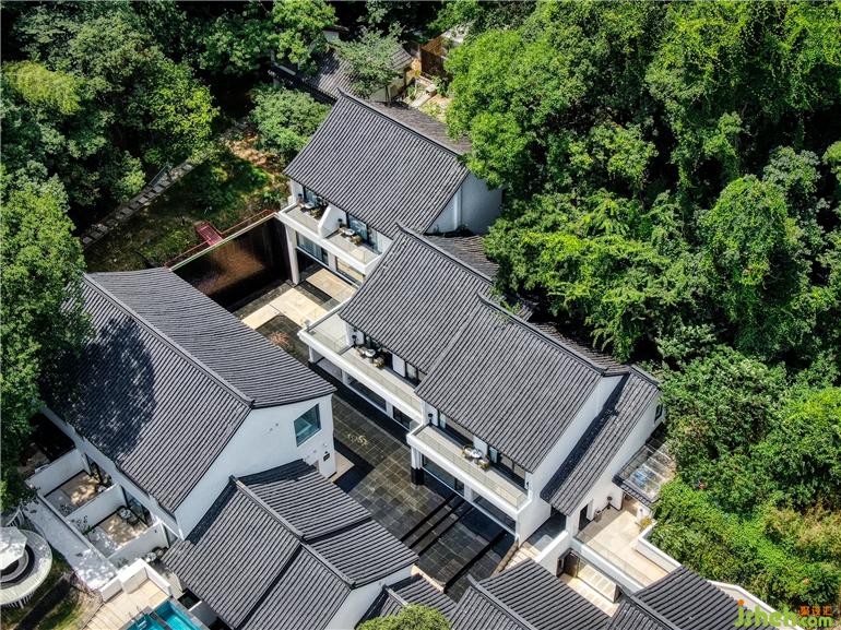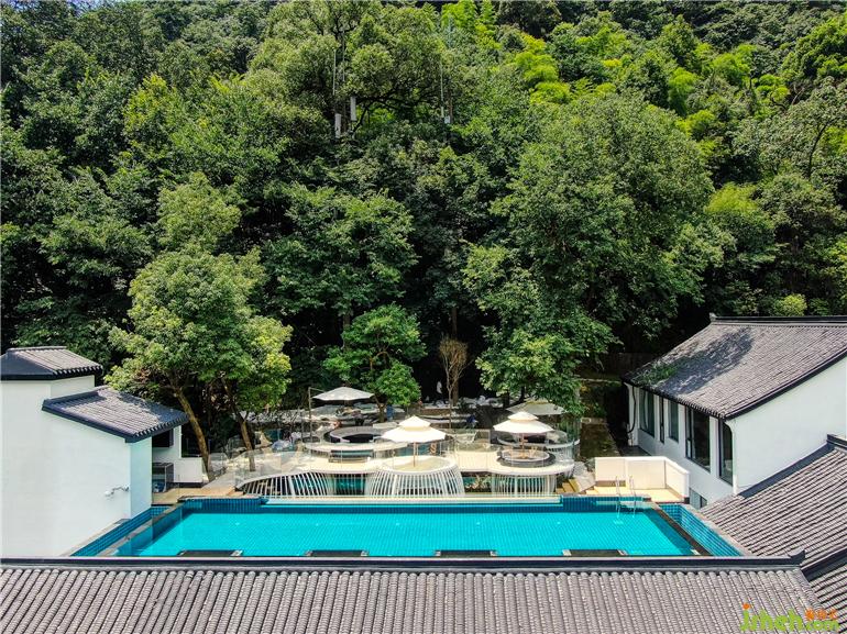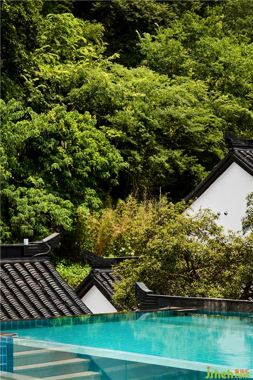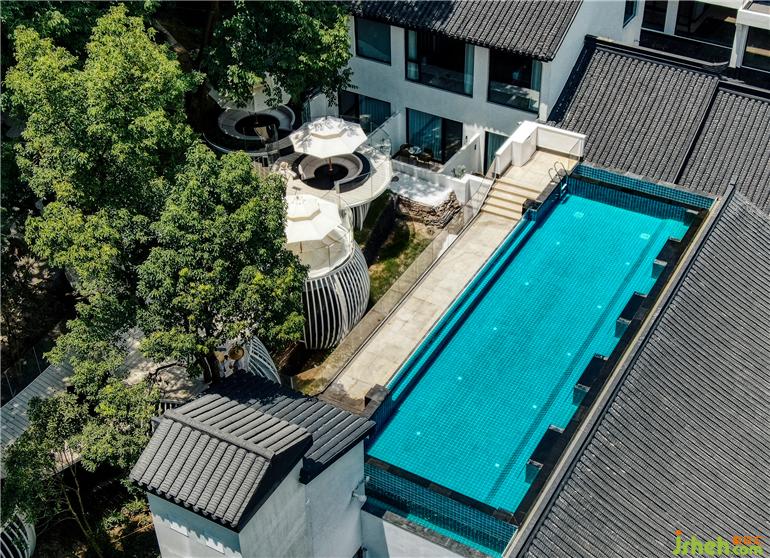 徽派建筑屋頂呈現(xiàn)全景觀泳池,傳統(tǒng)東方美學(xué)與新時(shí)代生活理念碰撞出奇特而美妙的火花。古韻極致,白墻黛瓦,錯(cuò)落有致。一汪蔚藍(lán)色泳池與天空相呼應(yīng),掩映在漫山遍野的綠色中,是現(xiàn)代建筑與自然的完美交融。
