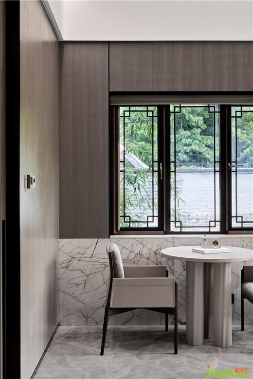 杭州度假酒店設(shè)計(jì)白色系的墻頂面搭配黑色系的墻面和家具為房間增添一份干練且舒適的氣息。窗外綠意盎然的植被給客房增添了些許質(zhì)感與愜意。