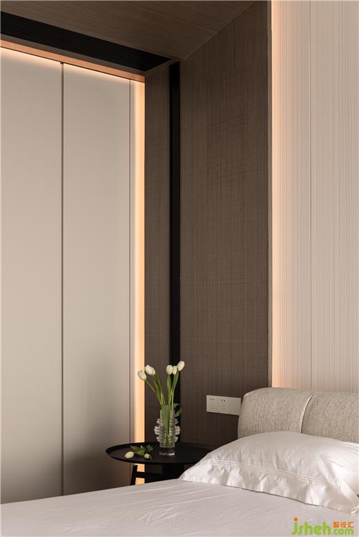 來自VESCOM的壁紙與B&B系列床品奠定生活品質(zhì)。臥室設(shè)計依舊以素色與簡約的“質(zhì)樸”感為核心,杭州綠地華家池印裝修設(shè)計創(chuàng)造屋主心中最舒適宜人的起居環(huán)境。