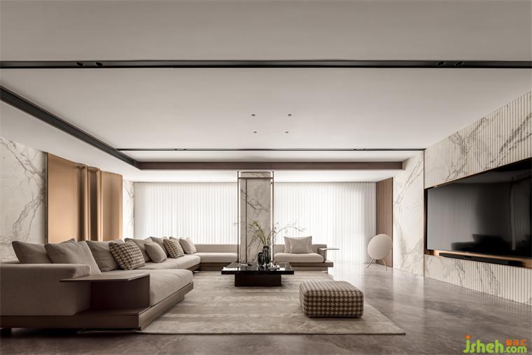 本案位于杭州·艮山府。適應(yīng)業(yè)主年輕家庭的生活方式,300㎡的大平層空間分作共享、服務(wù)型的功能單元與高品質(zhì)的生活單元。杭州大平層裝修設(shè)計以鮮明的意式輕奢風(fēng)格,將“回歸生活尺度”的設(shè)計理念,與對生活品質(zhì)的追求貫徹到住宅的每一個角落。
