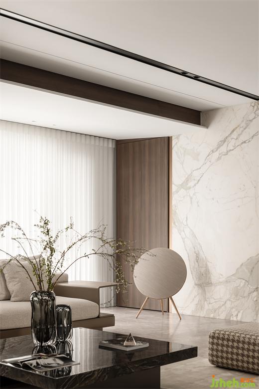 看似干凈統(tǒng)一的客餐廳實則蘊(yùn)藏深意。外包陽臺后,客廳擁有了令人艷羨的空間尺度。杭州大平層裝修設(shè)計以木飾面梳理空間秩序,臥室進(jìn)門隱藏在木紋肌理之中?,F(xiàn)代意式的質(zhì)感來自金屬、大理石、巖板、木飾面等多重材質(zhì)的和諧運用;平層住宅大空間的無主燈設(shè)計更考驗設(shè)計師對于光線營造的功底: