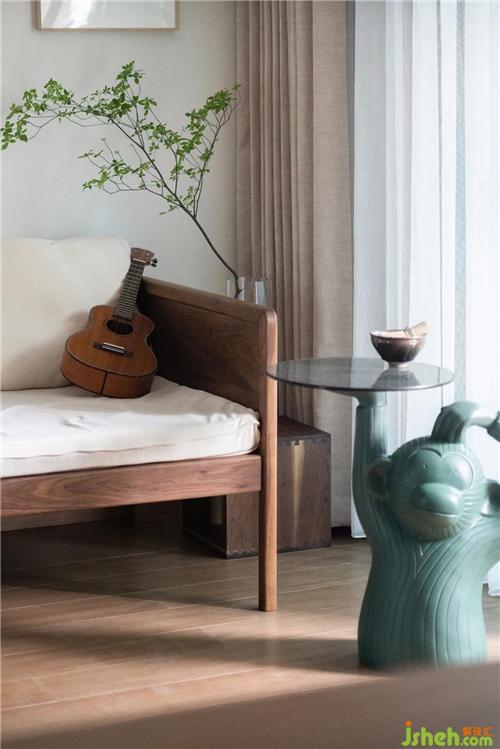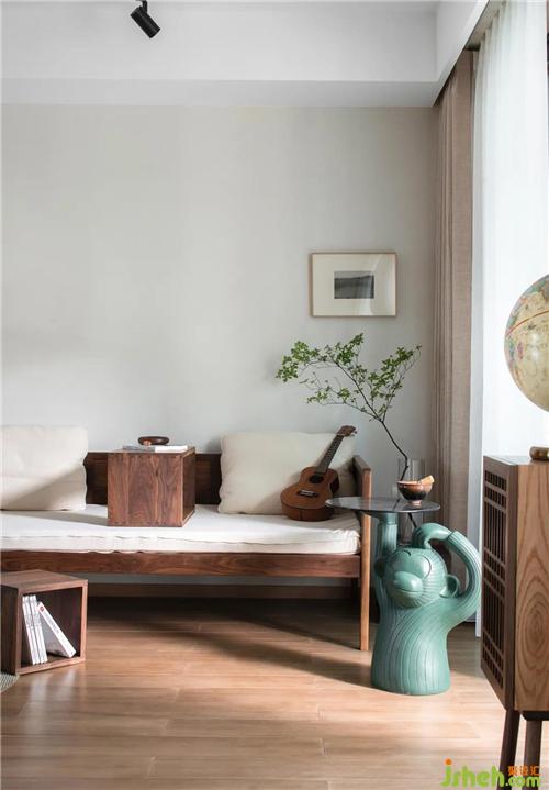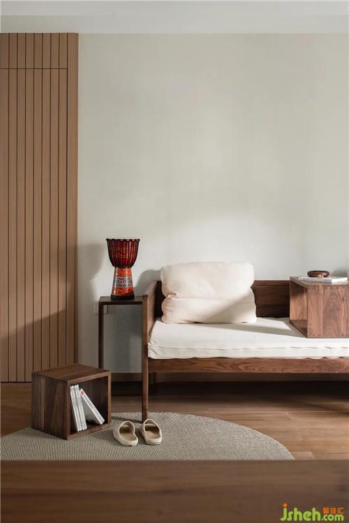 客廳朝南早晨陽光透過窗戶將溫暖傾注于室內(nèi),自由放松的生活由此開始,舟山裝修設(shè)計將細碎的時間編織成可觸摸的溫柔??蛷d木質(zhì)羅漢床搭配棉麻質(zhì)感的布藝坐墊最讓人感覺親近。