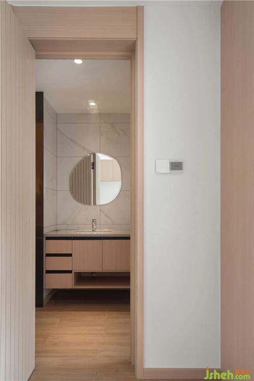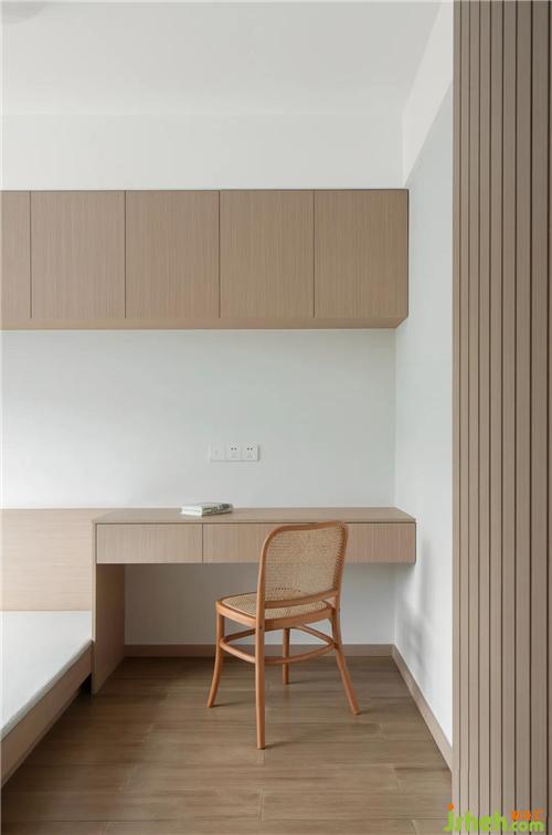 空間色彩以白色為底蘊(yùn),包容著淺色木紋紋理、沉穩(wěn)的白色肌理涂料相互作用于空間內(nèi),木質(zhì)紋路清淺帶出自然質(zhì)感。
