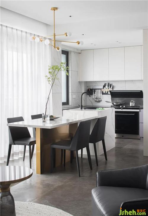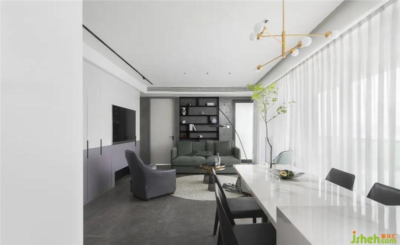 本案整體設(shè)計(jì)以黑白灰為主要色調(diào),融入木色元素,舟山裝修設(shè)計(jì)在軟裝的陳設(shè)上,講究灰度的和諧過(guò)度,木材、金屬與石材的應(yīng)用更是起到了點(diǎn)睛之筆的作用。