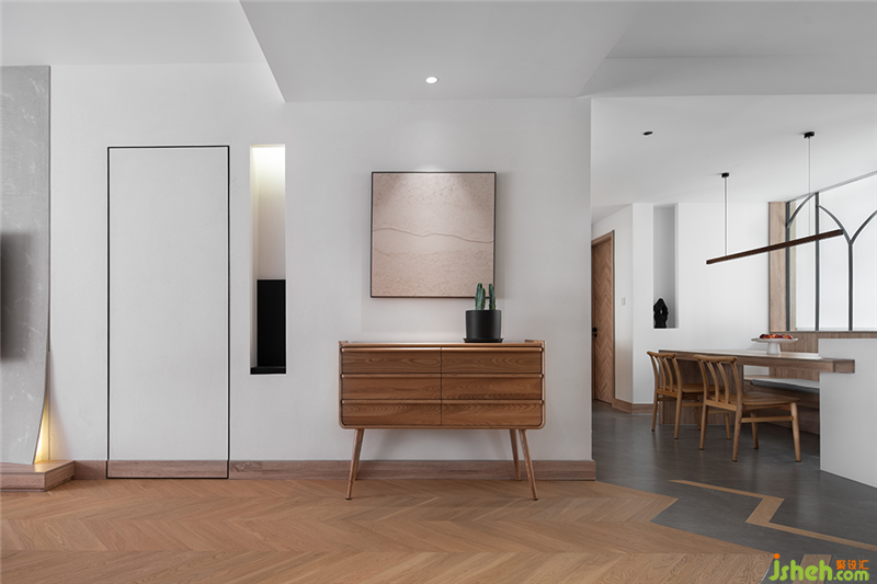 眾所周知侘寂是日本美學(xué)的一個組成部分,舟山室內(nèi)設(shè)計師本案也略用侘形來制造空間的樸素與安靜。