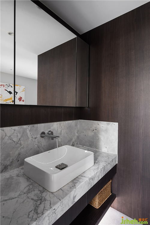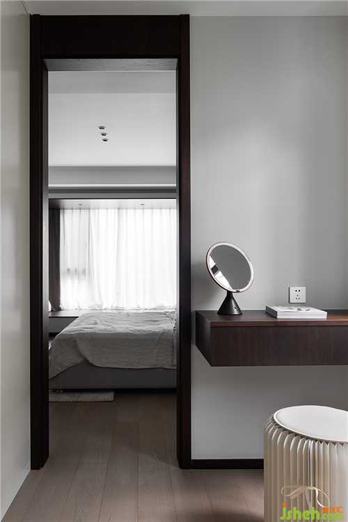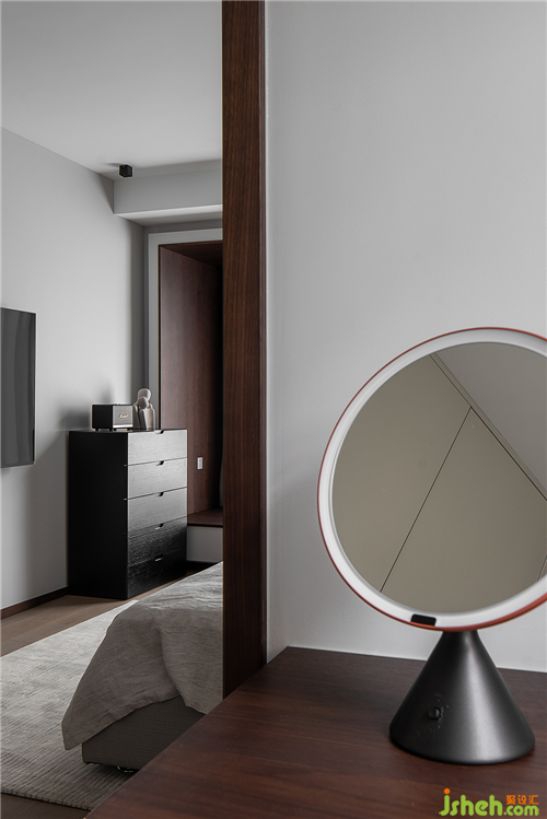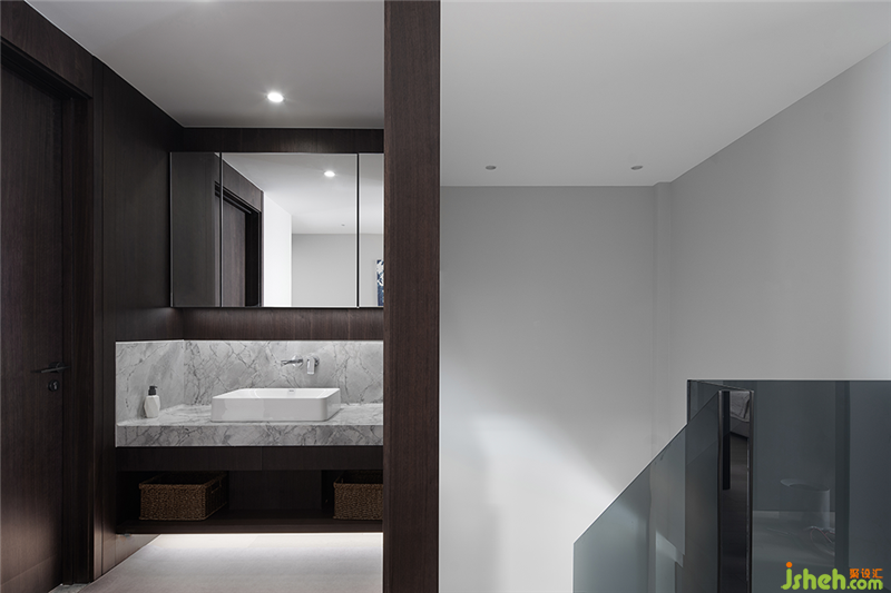 拾級而上的二層私人空間,將干區(qū)納入過道,鏡柜的使用不僅增加收納區(qū)舟山別墅裝,也在視覺上豐富了空間的層次。