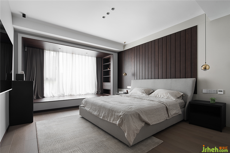 臥室注重功能和空間的協(xié)調(diào)性,沒有多余重復(fù)的造型,充滿了陽光和呼吸的感覺。一切沉寂簡單的格調(diào)只有簡約與明了。