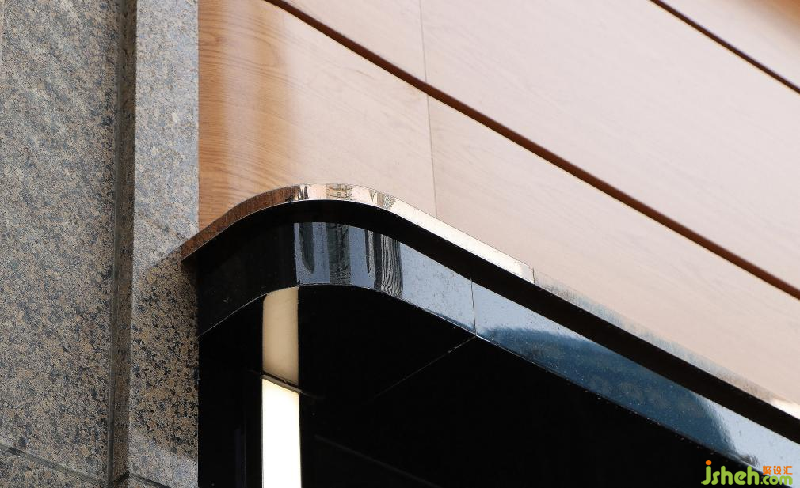 門頭鋁制仿木紋材質(zhì)與金屬的結(jié)合方式,青島店鋪設(shè)計這種結(jié)合方式可以有效地提升門頭整體的高級感,然后把最新的包具,或奢侈品進行結(jié)合展示。切合主題需求。