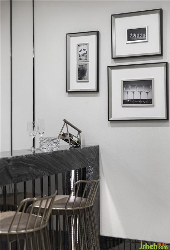 餐廳中各家具的用料與細節(jié)設計無不強調(diào)居住成員對生活品質(zhì)的要求,皮革與金屬的巧妙搭配足以彰顯Fendi“玩奢華于股掌之中”的驚人魄力。墻上一蓮葉則是點睛之筆,滿庭芳華中取佛性蓮花之清凈與脫俗。