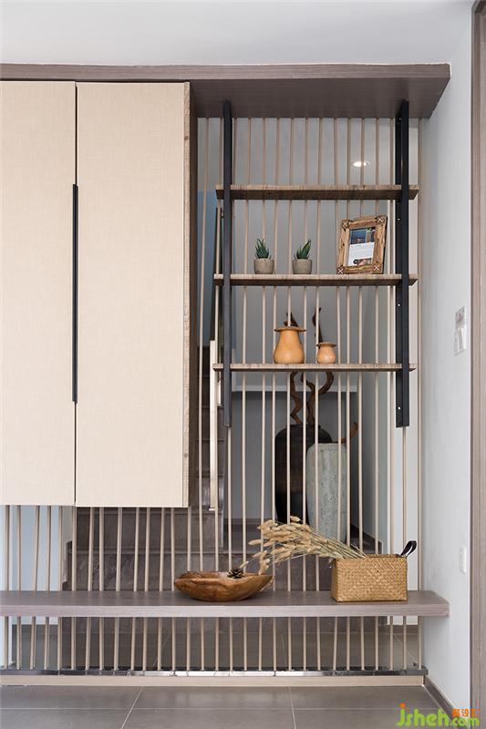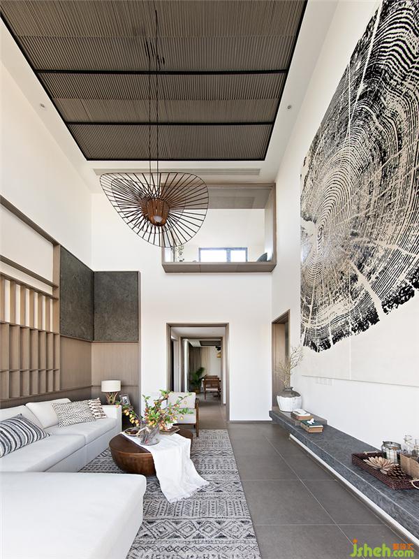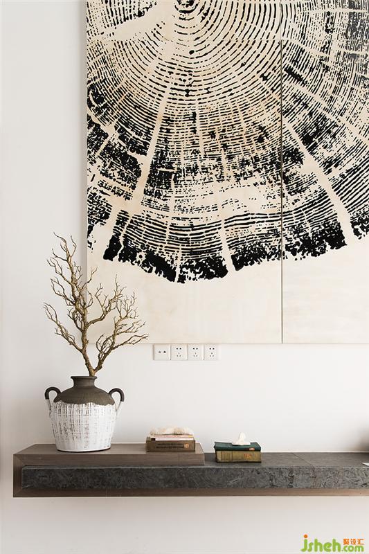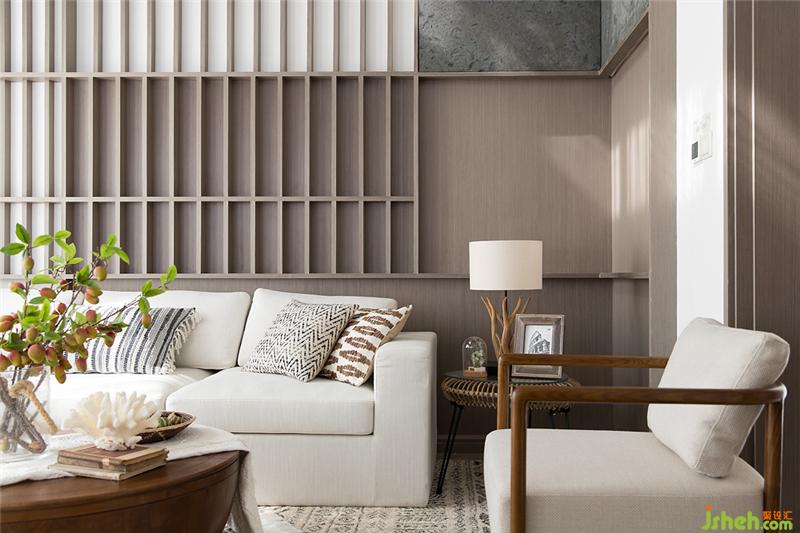 臥室中設(shè)計(jì)師選用灰麻花的基調(diào),聽似容易落入鄉(xiāng)野俗套,但采用質(zhì)感滿滿的墻壁布置與簡單大方的家紡,加以線條的捋順,一唱一和間,便讓入住者身在塵廬,也能獲得大自然的饋贈(zèng)。