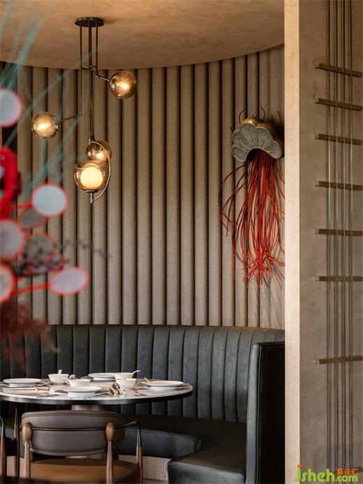 PLD設(shè)計(jì)師以“形”延“意”,廣州南沙金茂萬豪酒店設(shè)計(jì)運(yùn)用傳統(tǒng)粵劇舞臺(tái)簾子造型和琵琶形態(tài)以現(xiàn)代設(shè)計(jì)語言重構(gòu)美學(xué)空間,轉(zhuǎn)軸撥弦三兩聲,未成曲調(diào)先有情,讓旅者感受視覺與聽覺共存的藝術(shù)薈萃盛宴。