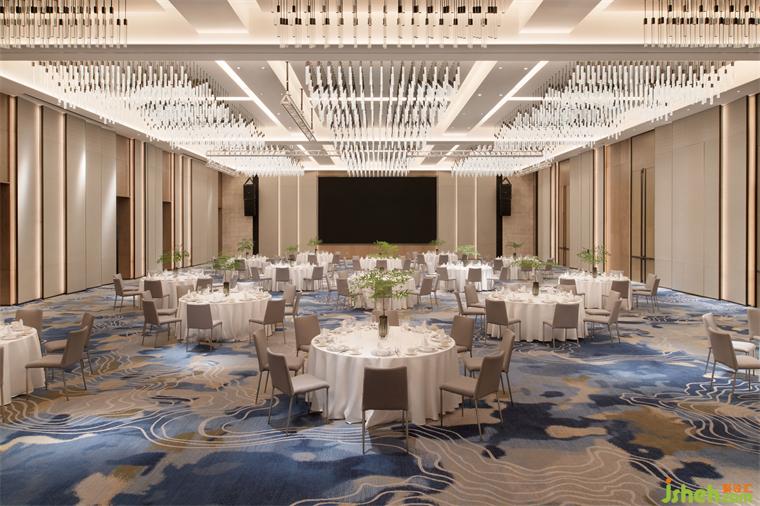 宴會(huì)空間的有序性及層次性,立面,空間維度的豐富變化,用材質(zhì)交替推進(jìn)空間層次,流動(dòng)韻律節(jié)奏,動(dòng)感弧度美而有力,節(jié)奏型和靈動(dòng)性流暢曲線輪廓構(gòu)成空間意識(shí)的特質(zhì),廣州南沙金茂萬豪酒店設(shè)計(jì)為賓客打造精彩難忘的會(huì)聚時(shí)刻。