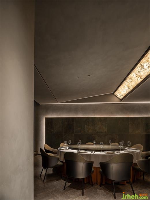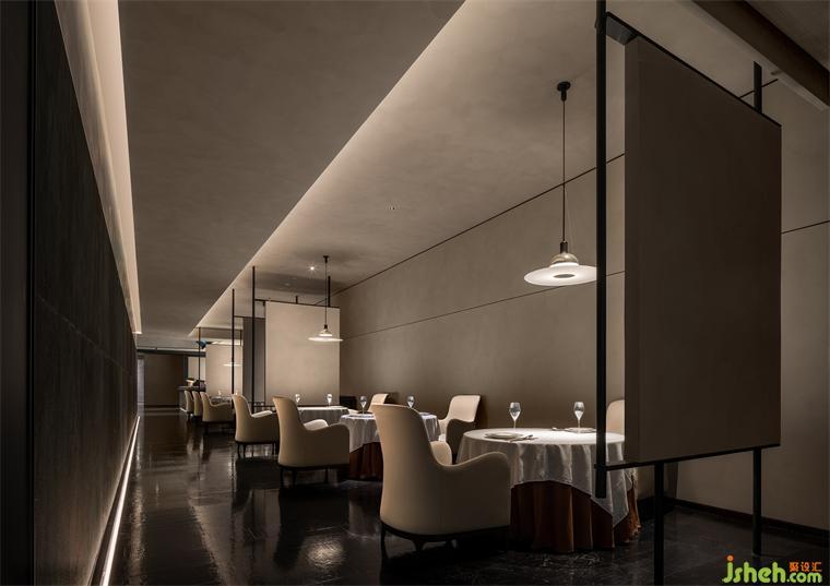 疏放一枝渾似雪,湘簾月上影嬋娟。古人對于茉莉的婆娑麗影高度贊嘆,餐廳設(shè)計則通過燈光與材質(zhì)互相配合,共同營造出平凡而高級的煙火氣。