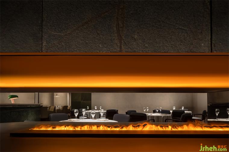 溫暖的爐火吸引視線,給靜謐的空間增添恰到好處的溫度,在起到最基本的劃分空間的基礎(chǔ)上,搖搖曳曳的燈火,讓人與人之間的距離自然拉近,松弛感和幸福感油然而生。