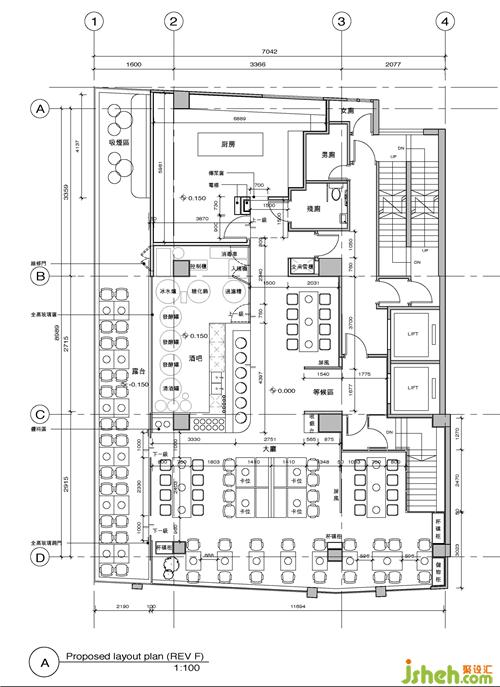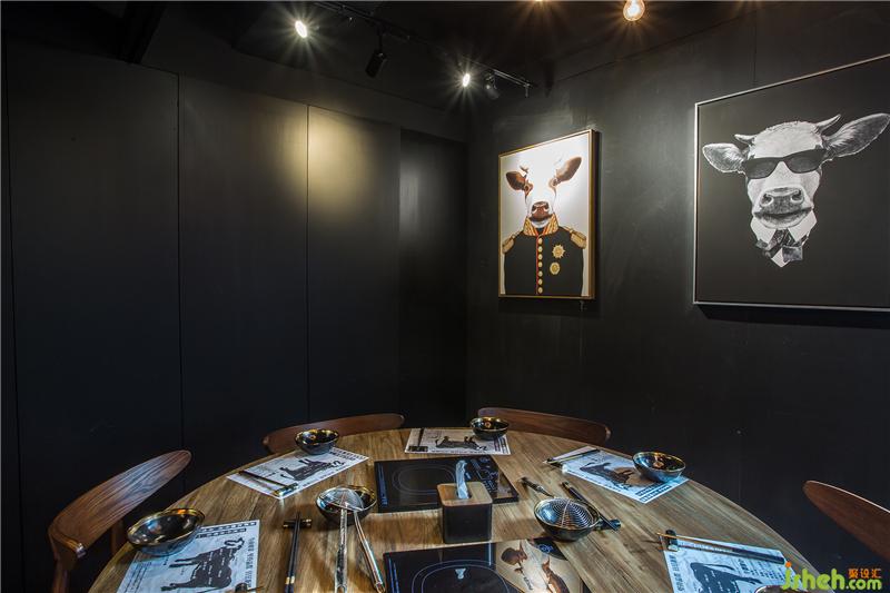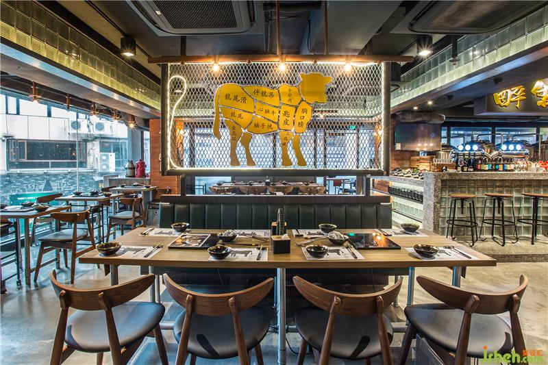 用餐區(qū)中央放置一面金屬網(wǎng)標牌,將金色的公牛部位圖擺放其中,昭示店中所供應的不同部分的牛肉,也讓顧客深入品味牛肉的各種魅力。同時用燈光照亮整個標牌,讓這里成為獨特的藝術裝置區(qū),吸引過往顧客的視線。餐廳設計