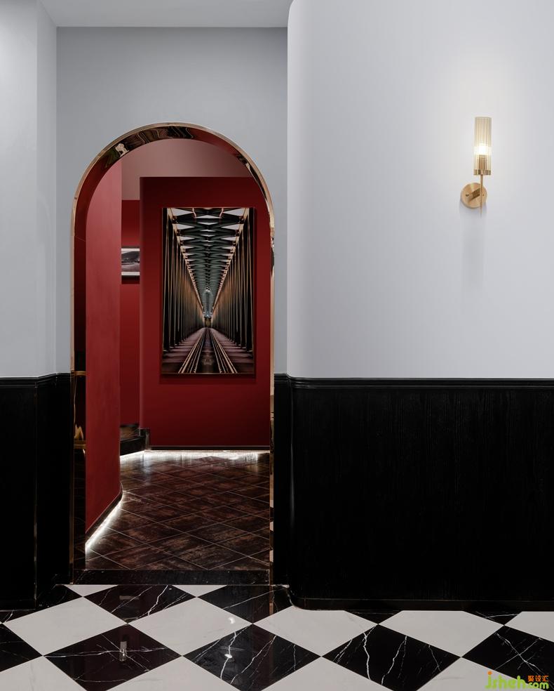 紅色的墻體裝飾,使整個(gè)空間變得更為熱情和活力,為整個(gè)空間添加了更多的想象力,同時(shí)使不同的空間表示形成統(tǒng)一的整體。具有強(qiáng)烈的舞臺(tái)感。像火焰般燃起了整片空間。