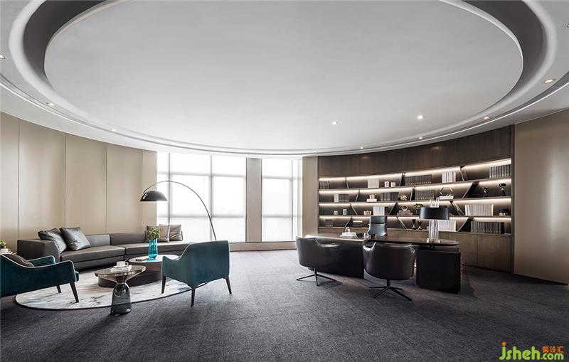 身似行云流水,心如皓月清風。連總裁辦公室的塊面關(guān)系都是自由奔放的狀態(tài)。視無界,境自寬,大弧度落地玻璃隔斷,彰顯了領(lǐng)導者虛懷若谷的氣度。室內(nèi)辦公及會客空間所有物件的組合形式同樣順應著建筑的弧形而圍合,在這樣的環(huán)境中待人接物,既溫文儒雅又不失風趣。
