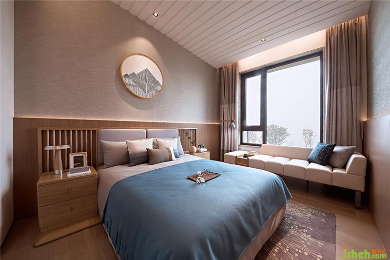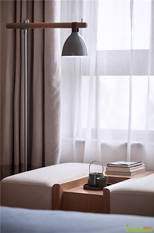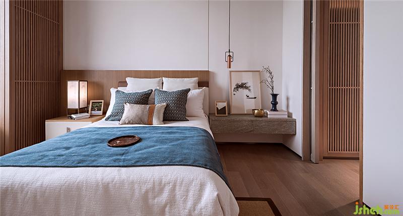 純粹、自然、舒適、愜意,木質(zhì)結(jié)構(gòu)糅合進(jìn)簡凈的空間。原木和輕柔的布質(zhì)的床品,麻白和雅藍(lán)的配色組合,素雅清爽。大理石橫置床頭柜的輕暖質(zhì)感與木質(zhì)床頭,折射出生活宜人的溫度,令處于其中的人身心得到放松。樣板房設(shè)計(jì)