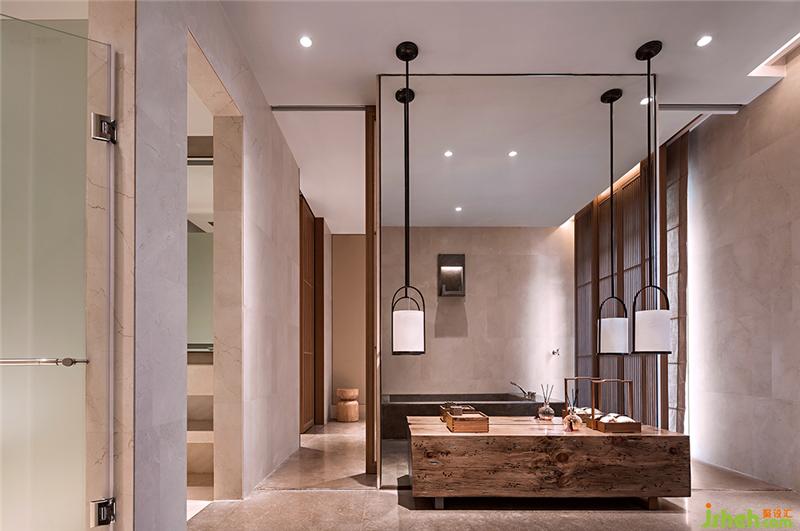 浴室以最少器物的干涉,實(shí)現(xiàn)自然之美。光影與大面落地鏡將空間延伸,創(chuàng)造靜謐閑暇的體驗(yàn)感。