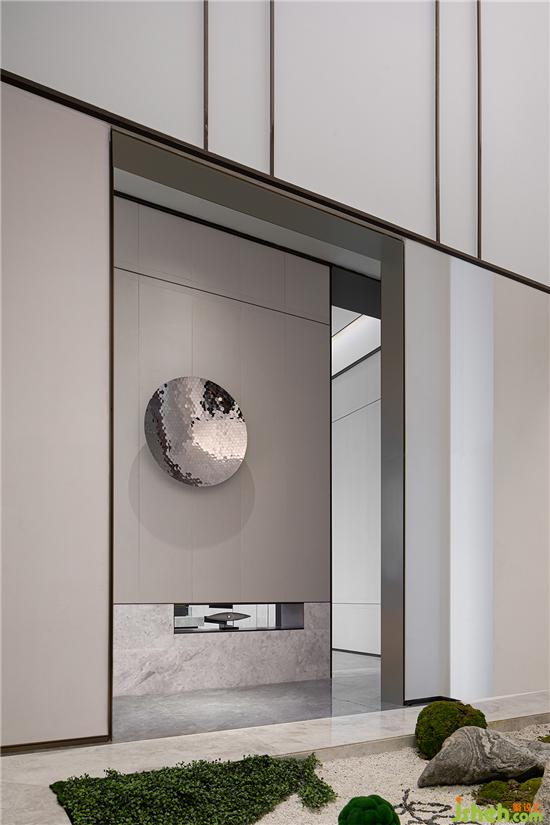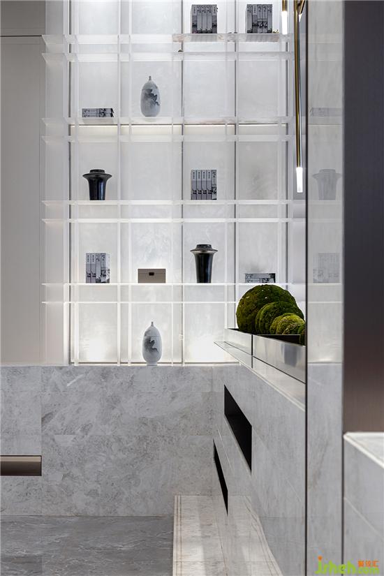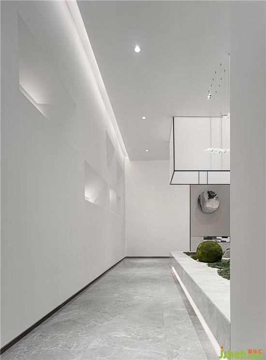 用簡約的線條勾勒出空間的精髓,再沿著脈絡(luò)“皴、擦、點(diǎn)、染”,將不同的色彩、材質(zhì)、燈光和裝飾等元素堆疊組合,“揮毫潑墨”之間,看似隨意而為的無章之法,卻不失藝術(shù)的秩序感,給人以美的視覺享受。銷售中心設(shè)計
