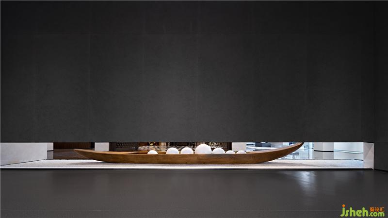 以前對于生活在海上的疍家人來說,漁船就是他們的家。在一層轉(zhuǎn)角過渡區(qū),一艘滿載著珍珠的東涌水鄉(xiāng)“獨木舟”,構成了空間的藝術焦點。獨木舟按照“刳木為舟”的古法,由一整根原木精工雕鑿而成。鮮明的地域文化符號與現(xiàn)代時尚元素碰撞,創(chuàng)造出富有嶺南韻味和時代氣息的藝術空間,喚起人們對東涌歷史根脈的記憶,和對未來國際時尚之都的暢想。