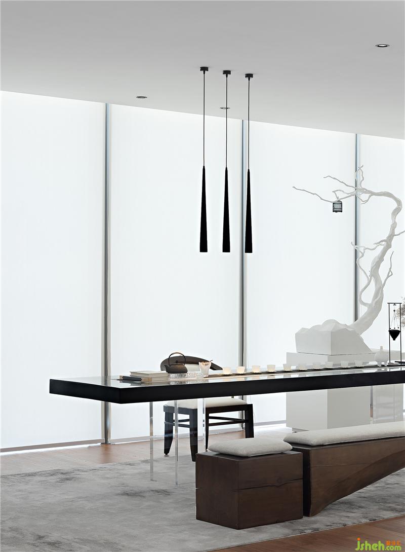 茶藝室延續(xù)了展示中心簡(jiǎn)約素雅的風(fēng)格,以極簡(jiǎn)的白色鋪墊空間的基調(diào),將茶道的禪意之美融入現(xiàn)代的表達(dá)手法,實(shí)虛結(jié)合,化繁為簡(jiǎn)。設(shè)計(jì)師借鑒鉆石元素的特性,充分利用光影營(yíng)造色彩素雅,格調(diào)清新,意境優(yōu)美的水墨山水畫境。