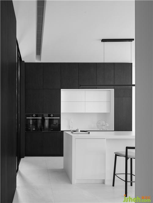 空間以內(nèi)斂的手法,從頂面到墻面,將功能向平滑的界面收納,這些功能隱于整潔流暢的線條,成就了一道嚴(yán)謹(jǐn)?shù)目臻g精密度,它既是可儲存收納的功能柜體,又是精密與美的品質(zhì)展現(xiàn)。