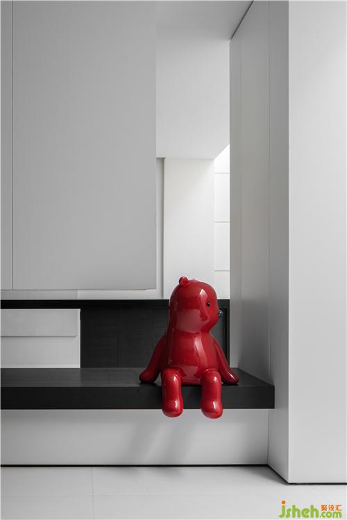 門廳處利用柜體,分割與窺視的關(guān)系,隔而不斷的關(guān)系,使空間產(chǎn)生出一種奇妙的對話關(guān)系。精選了當(dāng)代藝術(shù)家張占占的雕塑作品,“等待”家人歸來。