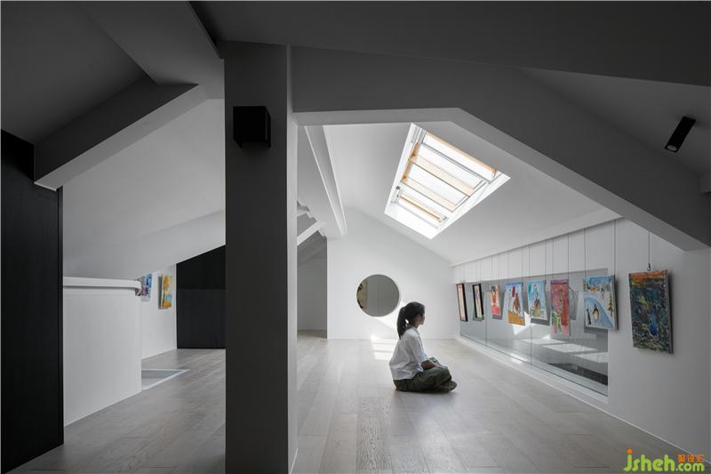 這對(duì)幸福美滿的年輕小夫妻,孕育了兩個(gè)小孩,一個(gè)愛繪畫一個(gè)愛音樂。閣樓空間作為“星空藝術(shù)畫廊”處理,展示了小朋友近幾年的繪畫作品。