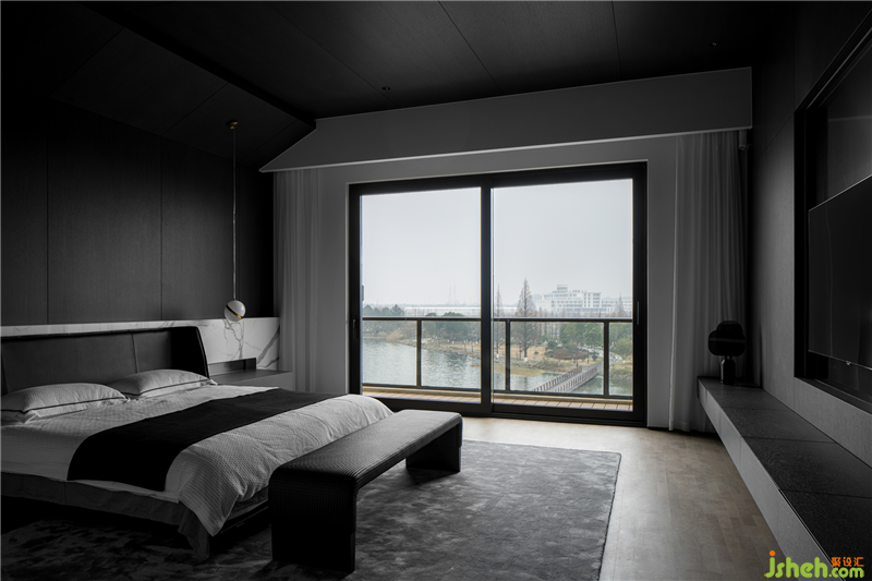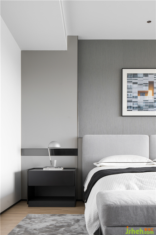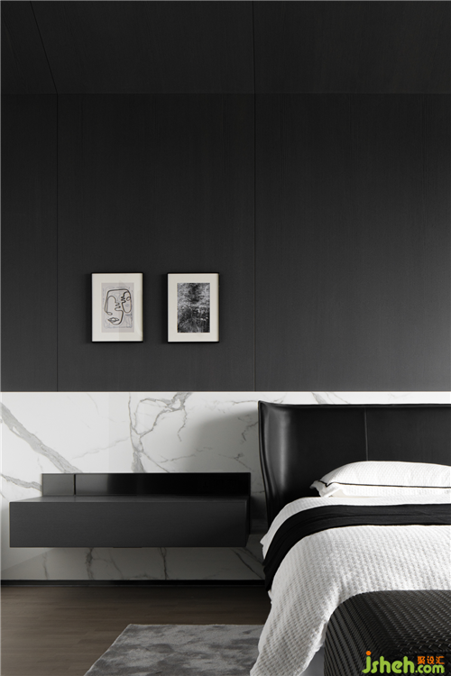 黑白大理石的拼接,奇妙的注入了復古摩登的元素,這里是屬于弟弟的個性空間。沒有過多的裝飾,卻營造出一種尤為特別的氛圍,反而給人帶來舒悅的清新之感。
