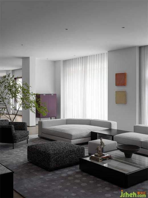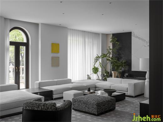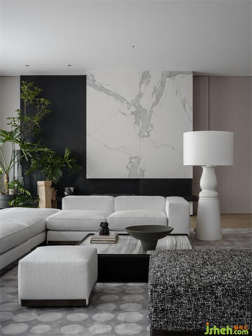 客廳以黑白灰為主色調(diào),選擇棉麻質(zhì)感的沙發(fā),別墅裝飾搭配磨砂感的炭黑色墻面以及光亮的大理石元素,獨(dú)特的質(zhì)感與光澤使整個(gè)空間看起來舒適且舒服。別墅裝飾墻上點(diǎn)綴著橙,黃,棕,米色的暖色調(diào)不規(guī)則肌理的小色塊,與平整的白色墻面相互碰撞,平靜中增添許多趣味。