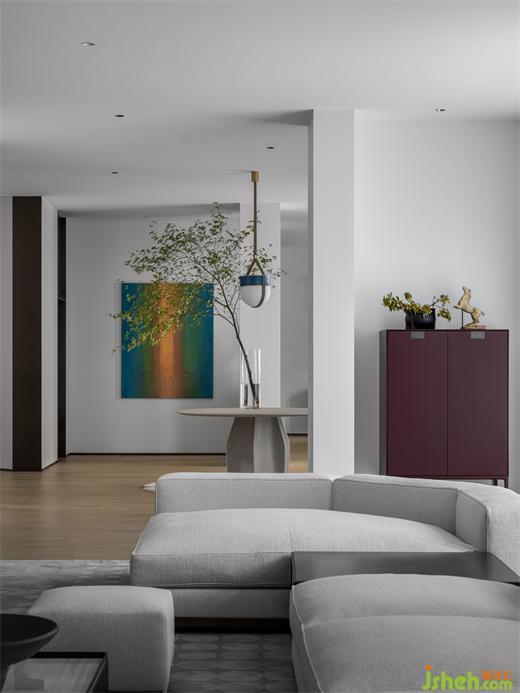 玉石雕塑質(zhì)感的臺(tái)燈,茶幾上的陶瓷盛器和黑陶小人雕塑,小小的配飾卻充滿了與眾不同有別具匠心的復(fù)古之感,別墅裝飾是帶有歷史和回憶的厚重感的東方美學(xué)。
