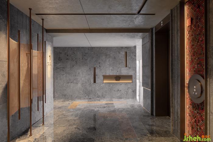 電梯廳為滋養(yǎng)了世世代代蘇州人家的陽(yáng)澄湖寫就一首恒遠(yuǎn)的贊歌。漁網(wǎng)意向的藝術(shù)品與刺繡裝點(diǎn)的墻面平行陣列,復(fù)刻重現(xiàn)了古蘇州漁獵與紡織的生活場(chǎng)景。