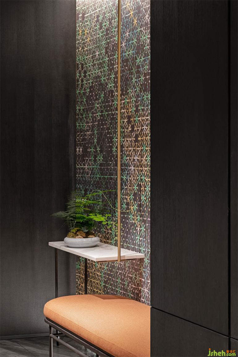 傳統(tǒng)作為現(xiàn)代創(chuàng)造與創(chuàng)新的不竭源泉,在不斷的轉(zhuǎn)變與升華中,融入時(shí)尚與當(dāng)下。辦公會(huì)所設(shè)計(jì)以燦若朝霞的蜀錦為主題的廊道背景墻,是對(duì)巴蜀文化的致敬,亦是對(duì)追求極致工匠精神的謳歌。