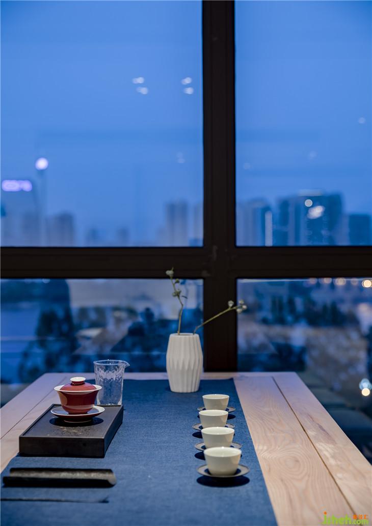 客廳一側(cè),整面的落地玻璃窗,引入室外明亮的自然光線,讓空間更加通透開闊。而原有的陽臺(tái)位置,則打造成了品茗區(qū),是居者追逐靜心的絕佳場(chǎng)所??蛷d和餐廳采用了開放式布局,延伸的木地板和白色墻面將兩個(gè)功能區(qū)連為一體。