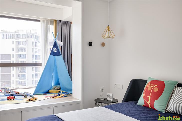 次臥的部分,不同的色彩營造不同的空間個性。女孩房以粉色塑造天真浪漫,男孩房以天藍色塑造純凈朝氣,父母房則以靛藍塑造沉穩(wěn)大氣。