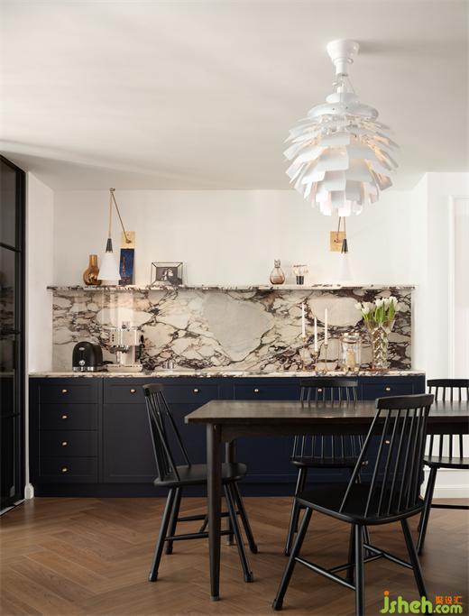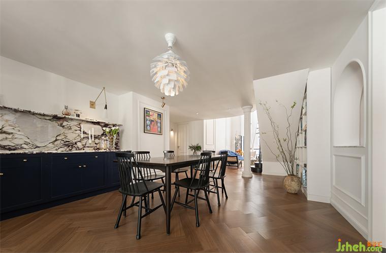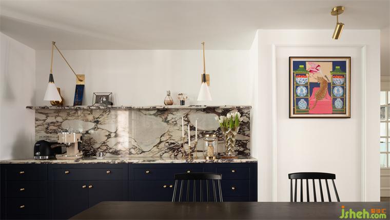 餐邊柜使用的大理石是業(yè)主挑選了許久、專門從外省運(yùn)回的寶格麗紫,廣州復(fù)式設(shè)計(jì)中間酷似愛心的天然紋理表達(dá)了主人的浪漫。他們喜歡把心意隱藏在這房子的某個(gè)地方,又與整個(gè)設(shè)計(jì)配合的絲絲入扣,讓人贊嘆。